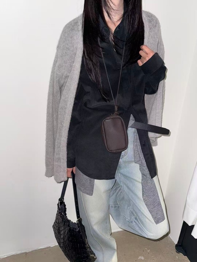 広めの襟とボタンが特徴のニットトップス。柔らかく暖かい素材で、肌触りも心地よく、上品で落ち着いた印象を演出します。 A knit top featuring a wide collar and buttons. Soft and warm, it feels comfortable on the skin while offering an elegant and refined look.
