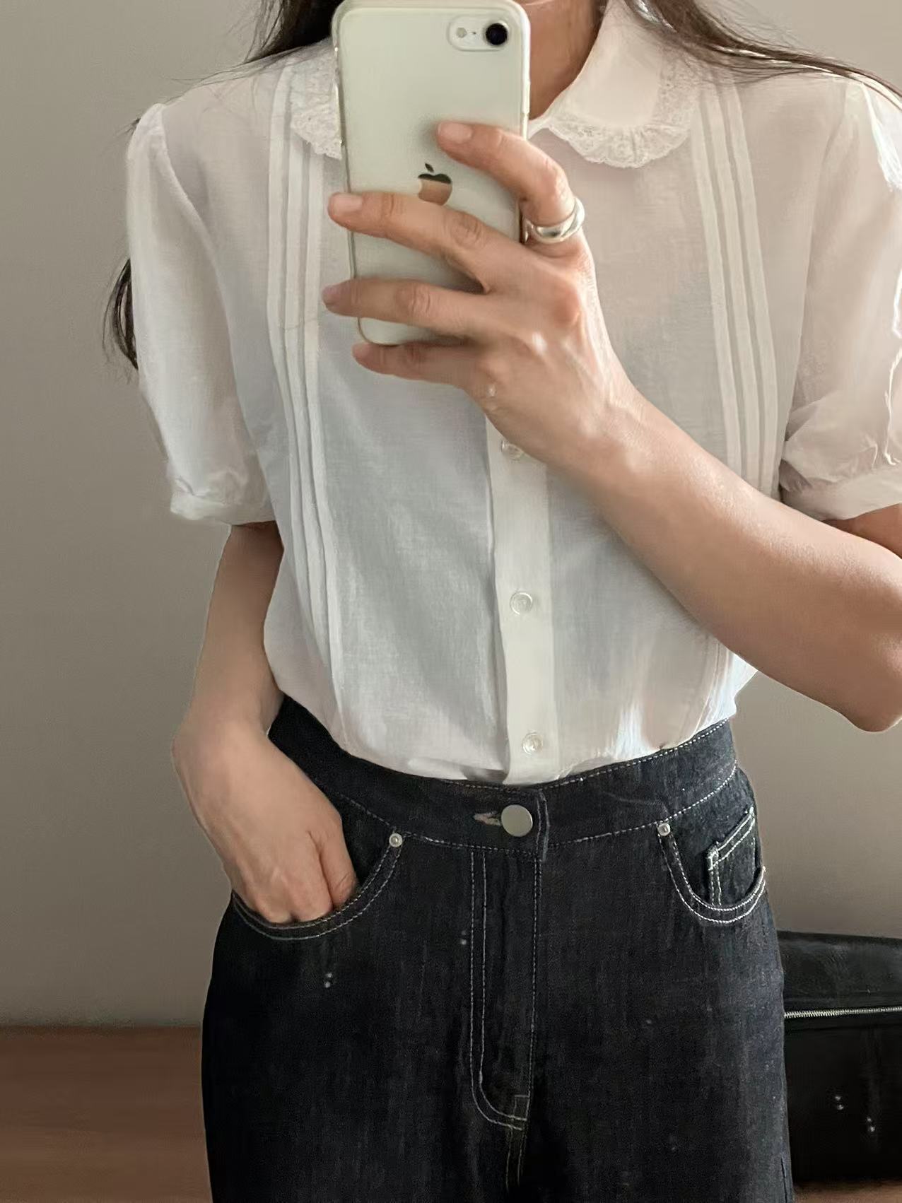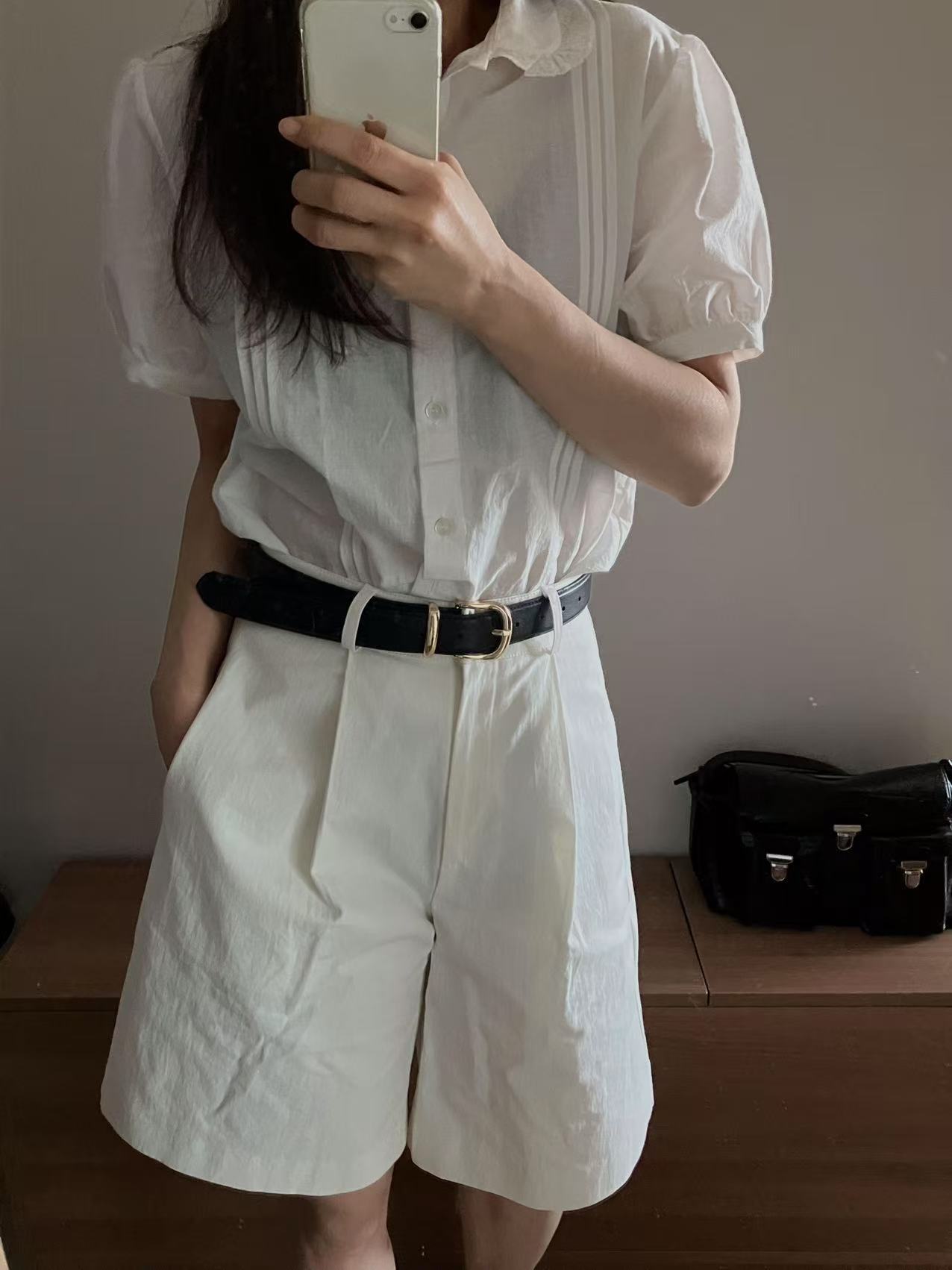 可愛らしい泡泡袖のデザインで、夏にぴったりの涼しさと甘さを兼ね備えたトップスです。軽やかな素材で、快適に過ごせます。