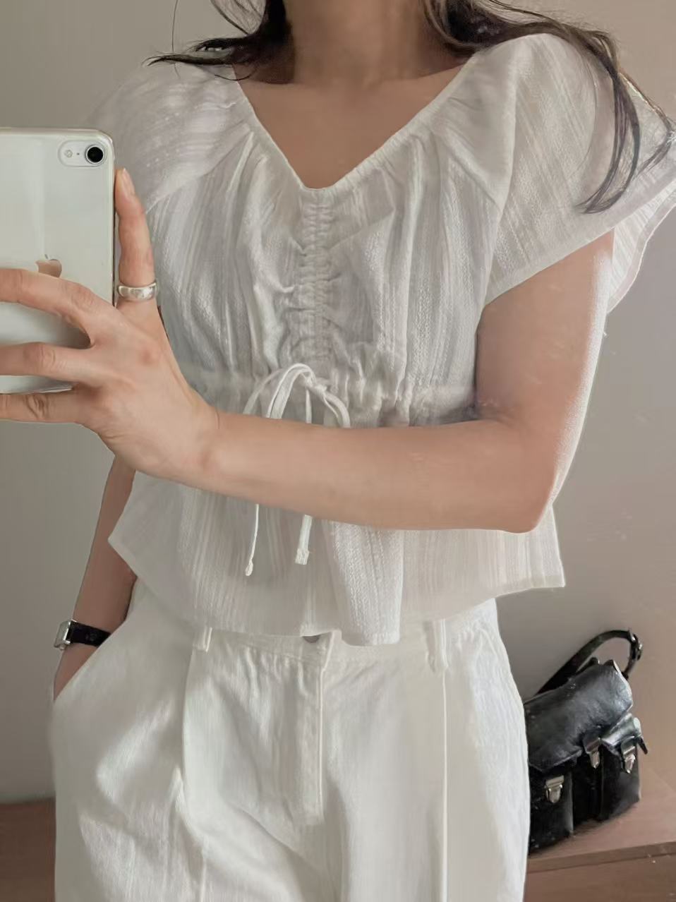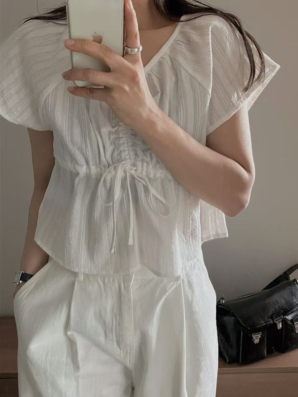 エラブラウスは、100%コットンで作られた時代を超えるアイテム。柔らかな質感と使いやすいデザインで、カジュアルにも上品なシーンにもぴったりです。