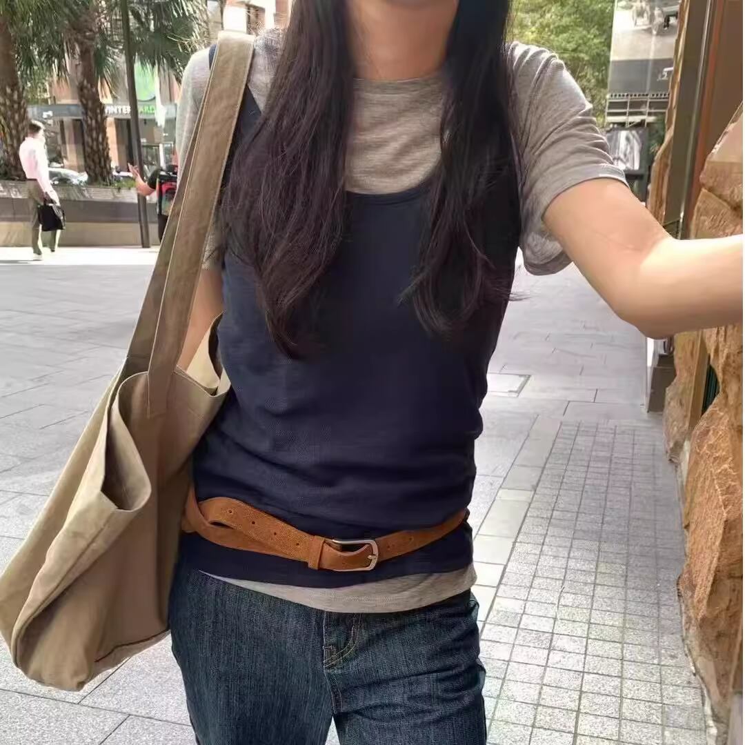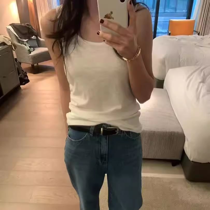 A cotton camisole with wide straps and a flattering, close fit. Simple yet quietly refined, this versatile piece comes in multiple hues—perfect as a base layer or worn alone with calm confidence.