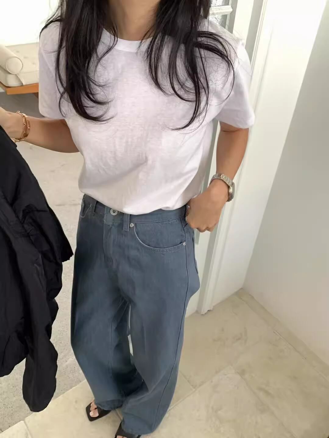 2025年の韓国風ベーシックTシャツ。綿100%で通気性と肌触りに優れ、日常使いにぴったりの一枚。シンプルでどんなコーデにも馴染む定番アイテムです。