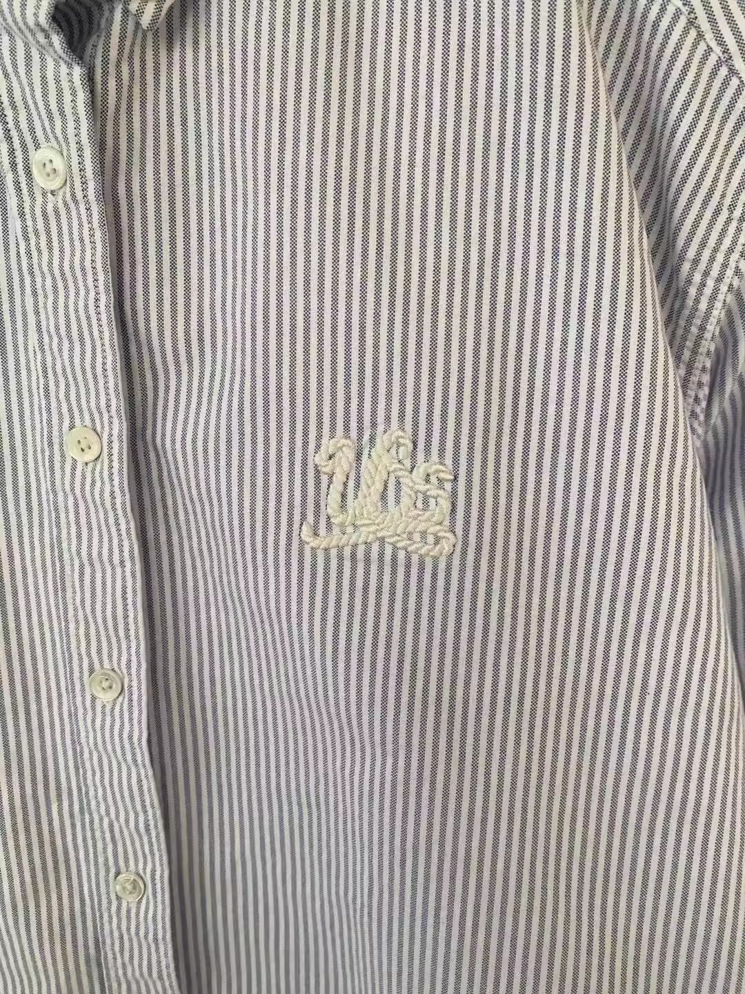 A 2025 Korean-inspired shirt crafted from 100% cotton, adorned with delicate dimensional embroidery and classic stripes for a poetic, refined look.