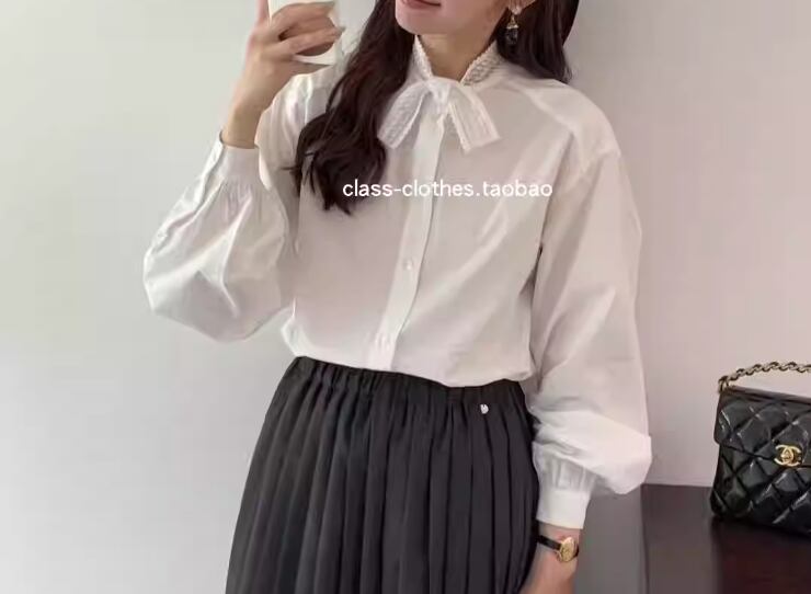 レースと小さなひらひらリボンをあしらった繊細なブラウス。