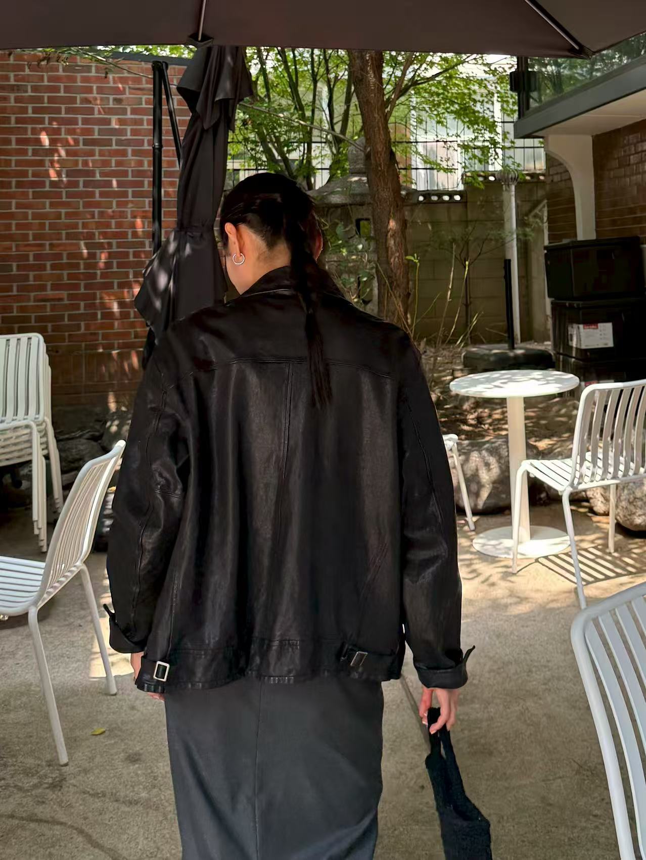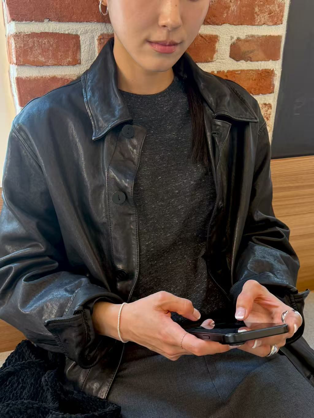 Crafted from supple Italian lambskin, this jacket carries a quiet elegance that lingers beyond time.