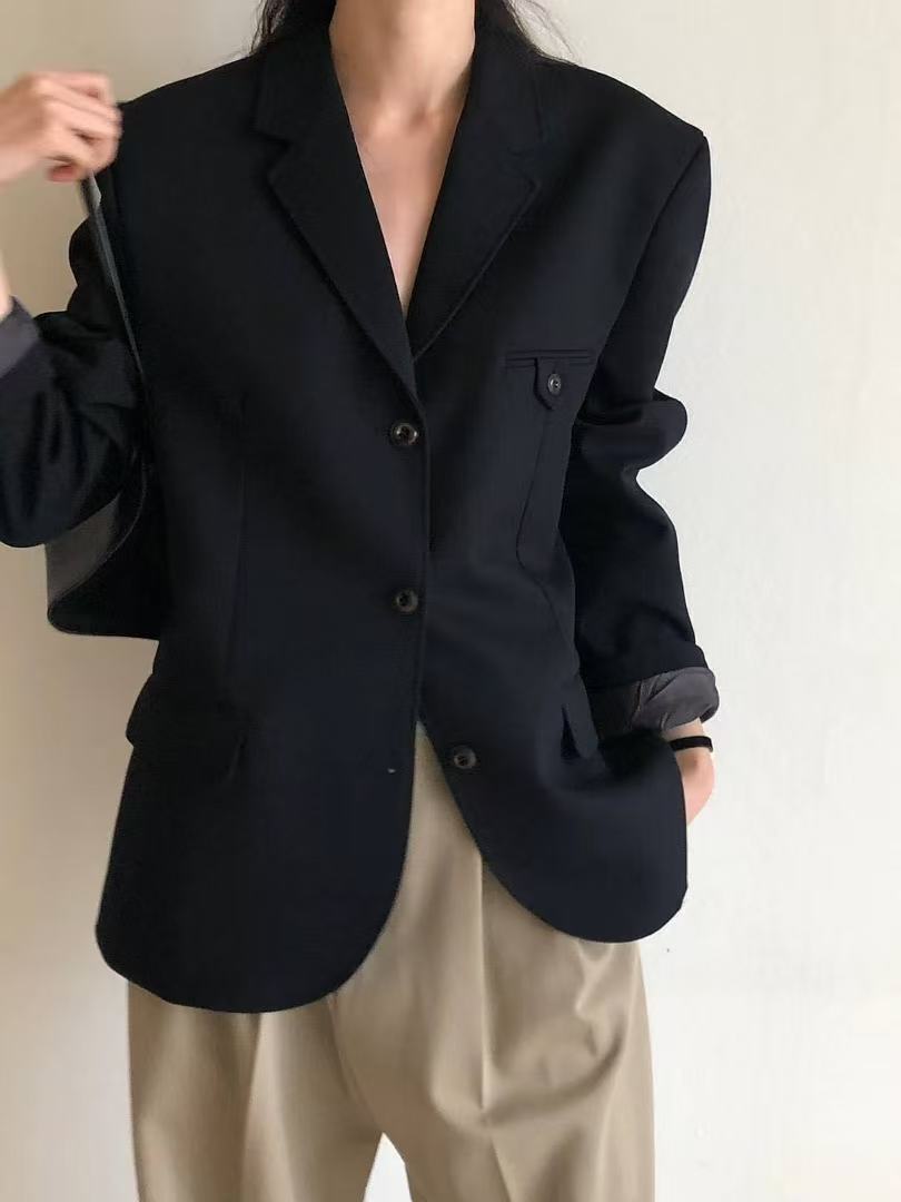 A Korean-style autumn blazer that balances casual ease with refined tailoring.