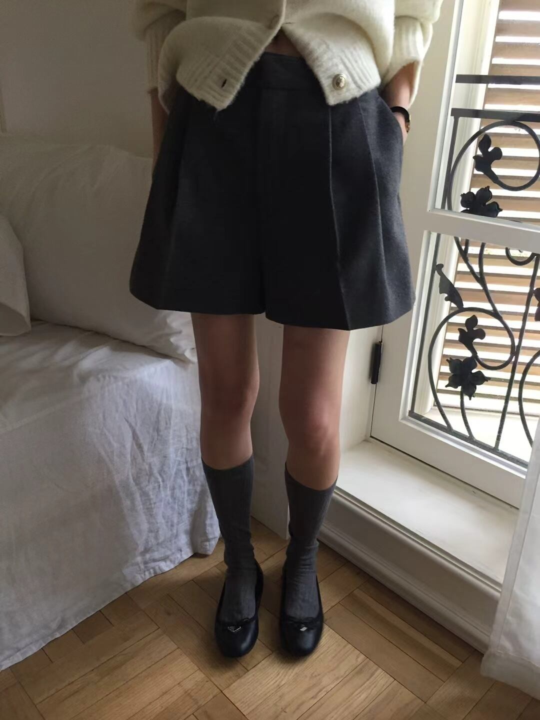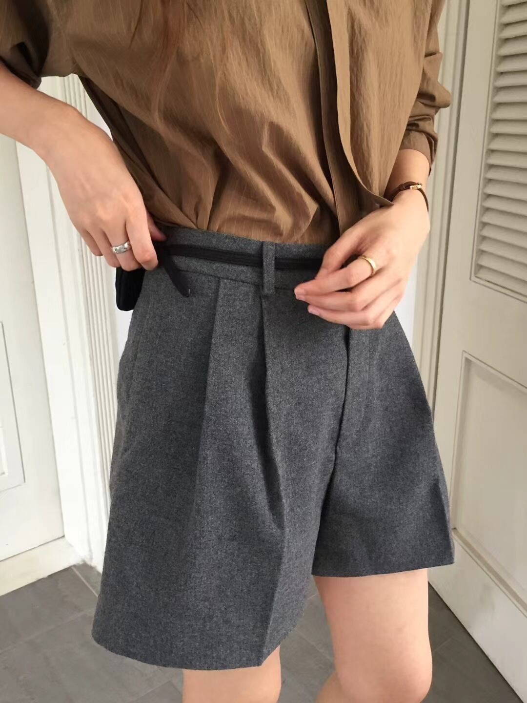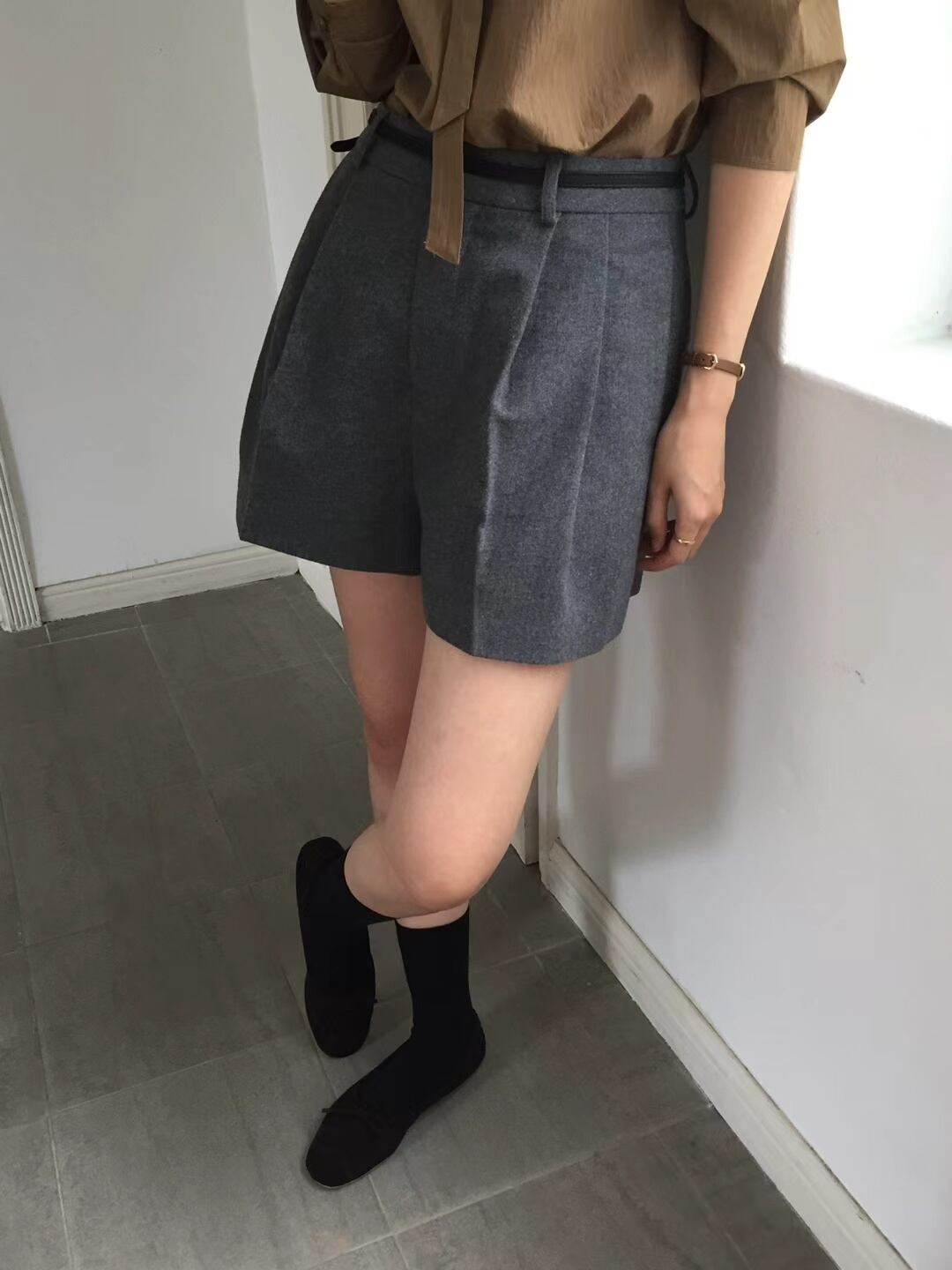 春秋にぴったりのウール混紡ショートパンツ。