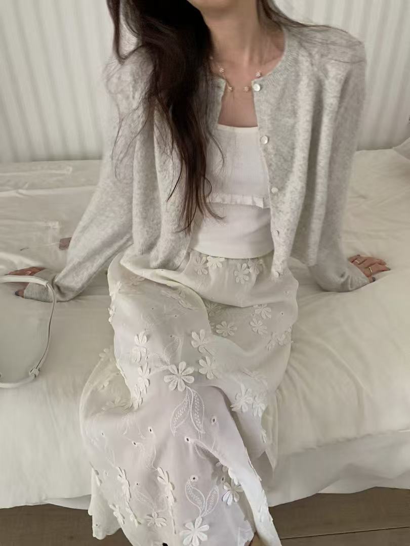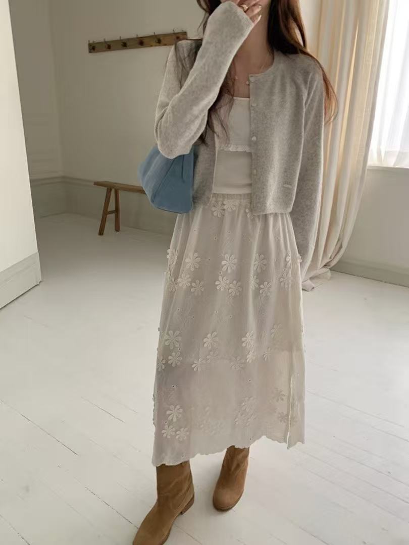 立体的な小花モチーフをあしらった華やかな半裙。