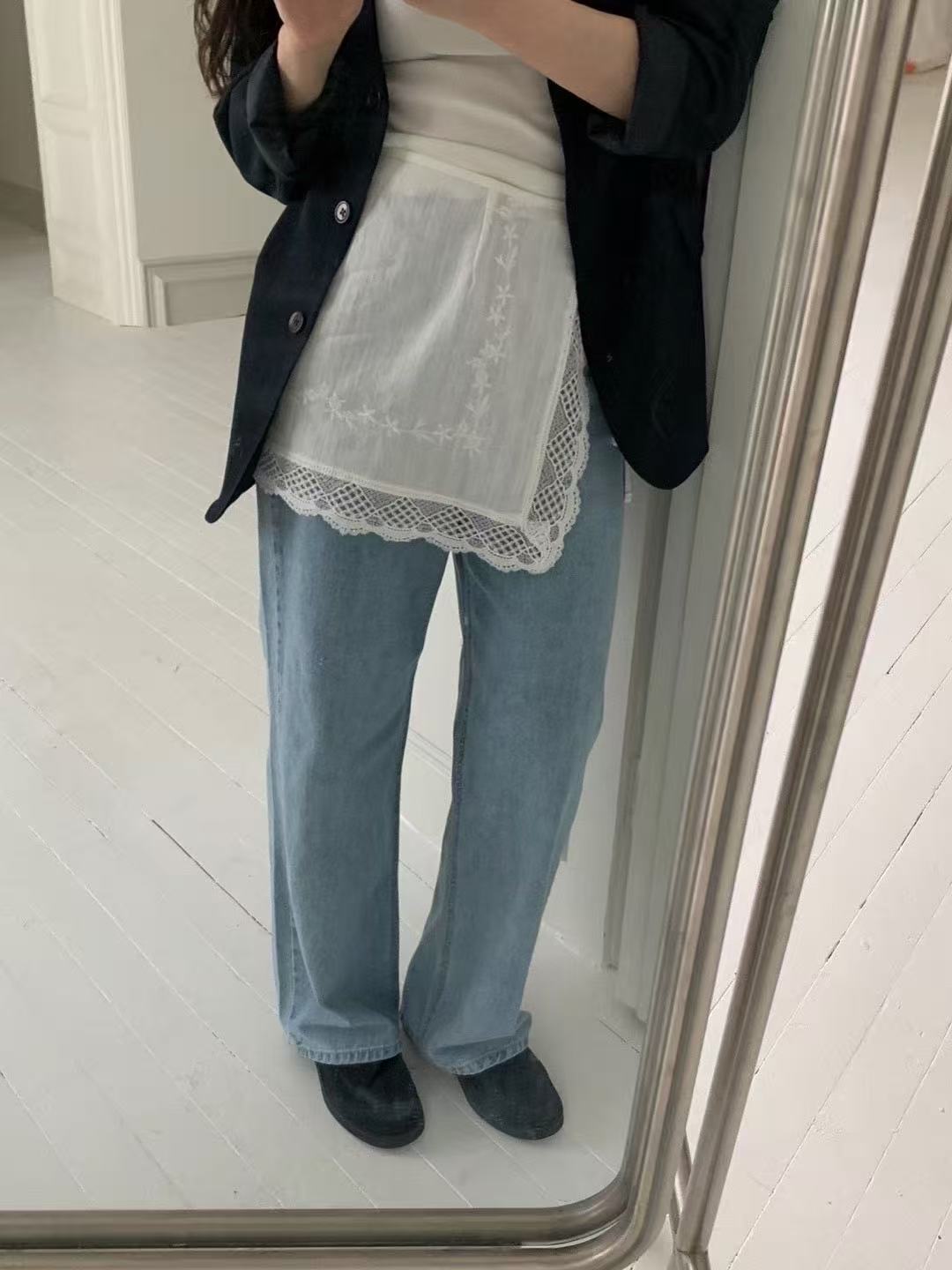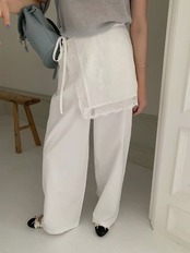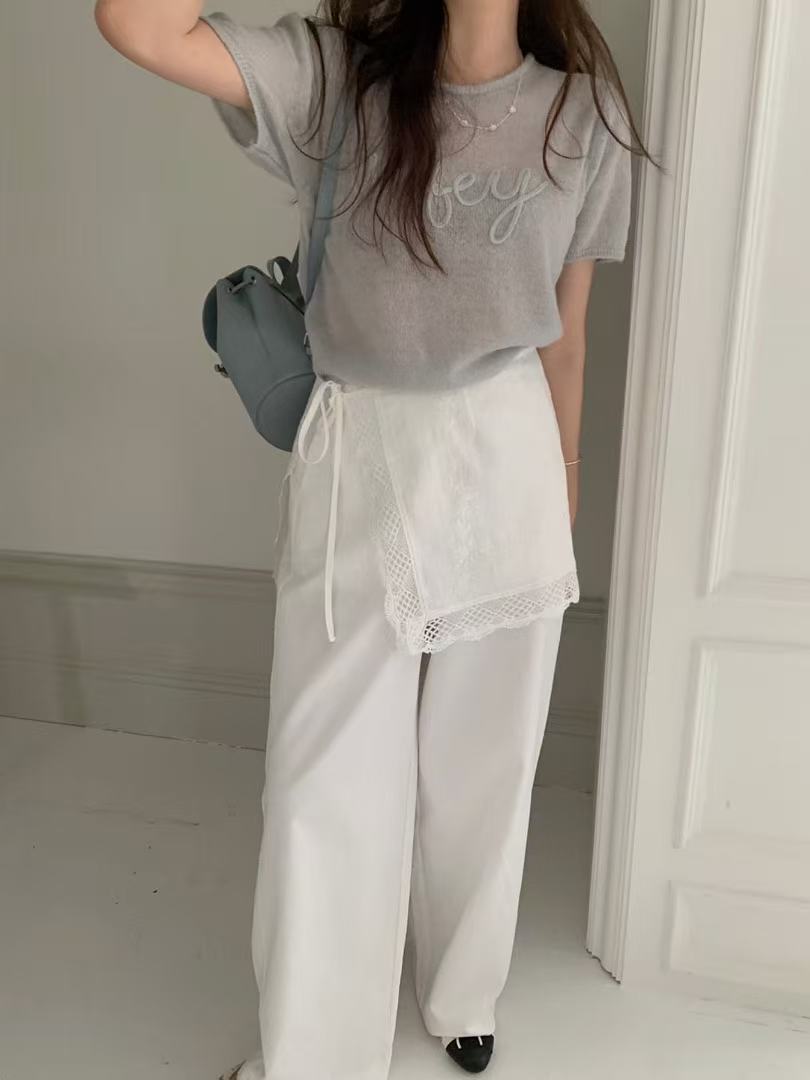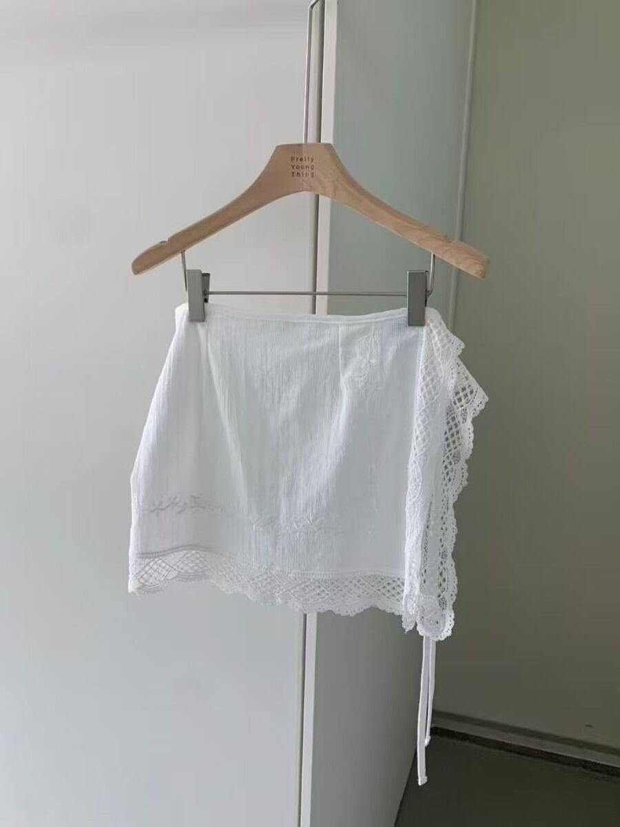 Featuring a white lace knit flap at the waist, this design adds a delicate, feminine touch.