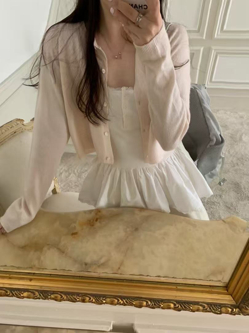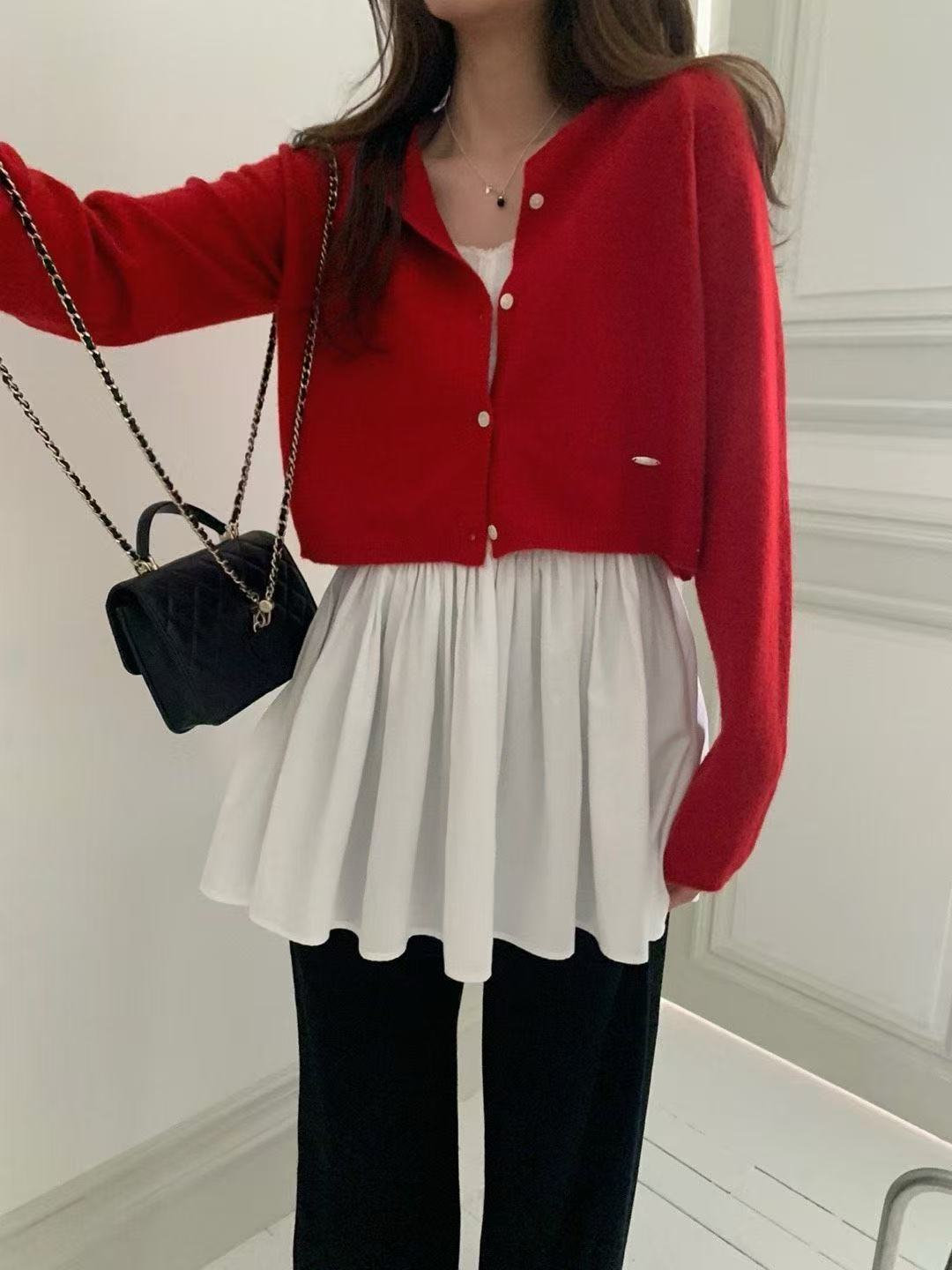 柔らかなニット素材で仕立てた、丸首デザインの开衫。