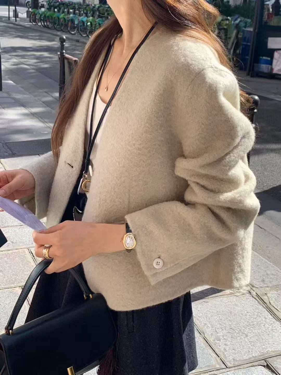 A refined, soft wool-blend coat.