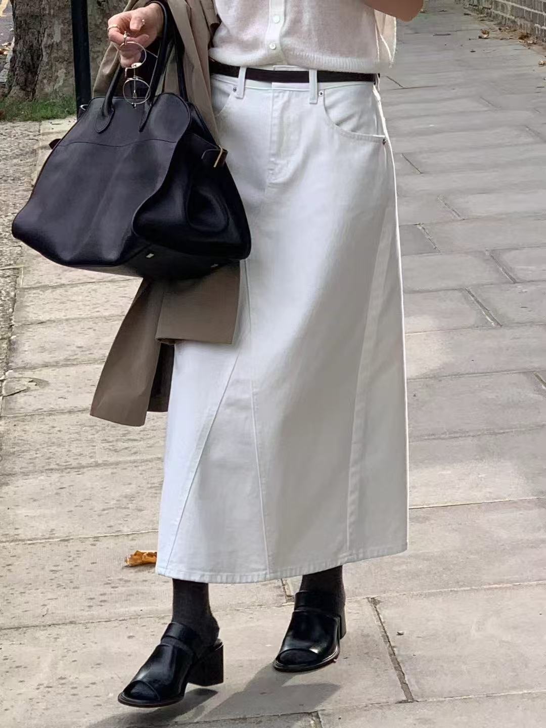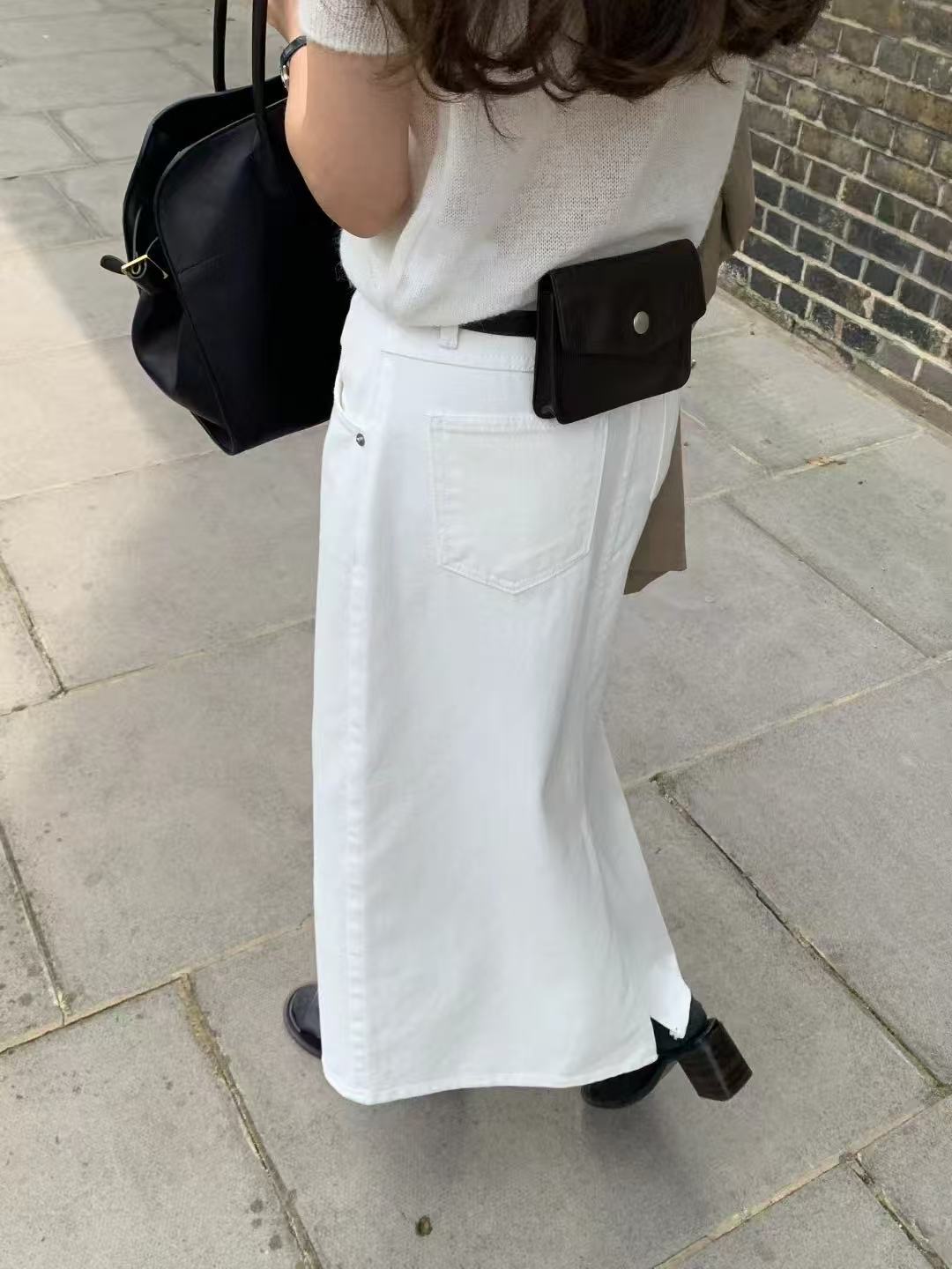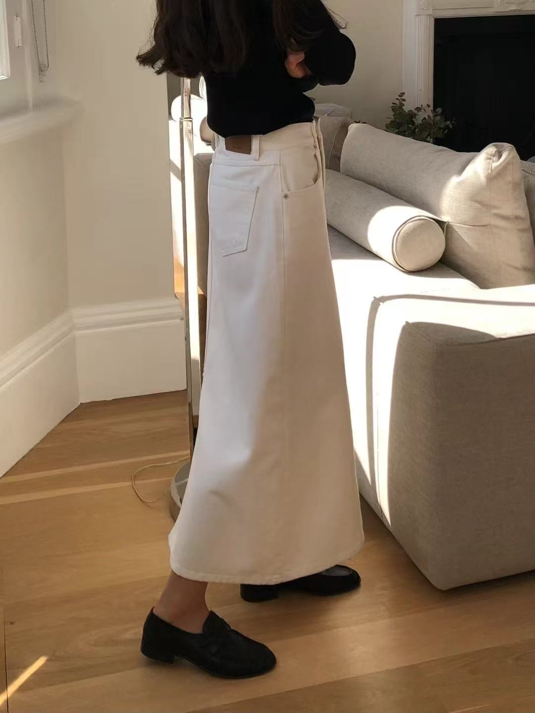 ホワイトデニムのミニスカート。