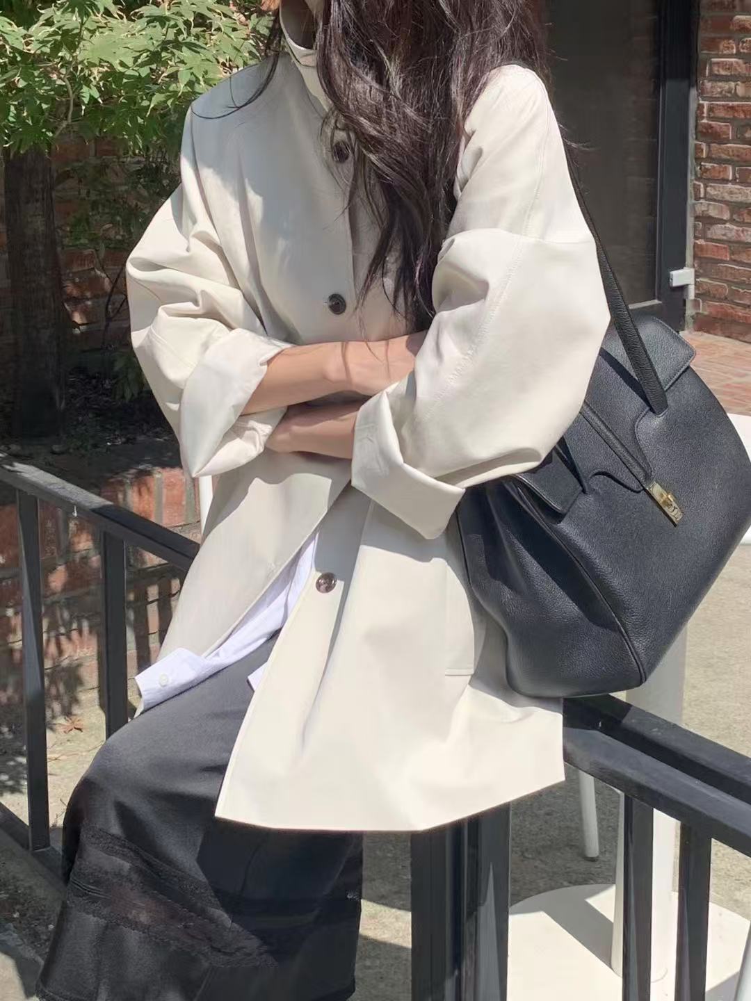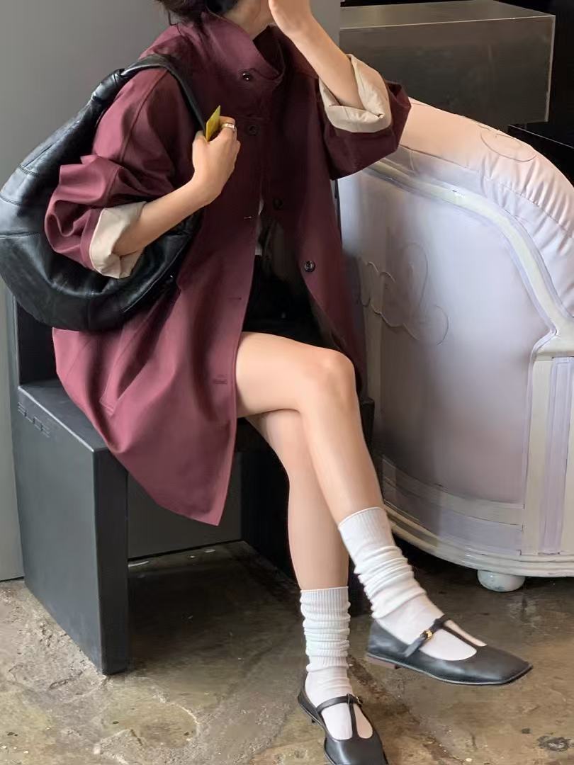 A lightweight spring-autumn trench coat with clean, flowing lines, exuding gentle elegance. Perfect for morning strolls or afternoon coffee moments, seamlessly blending into everyday life.