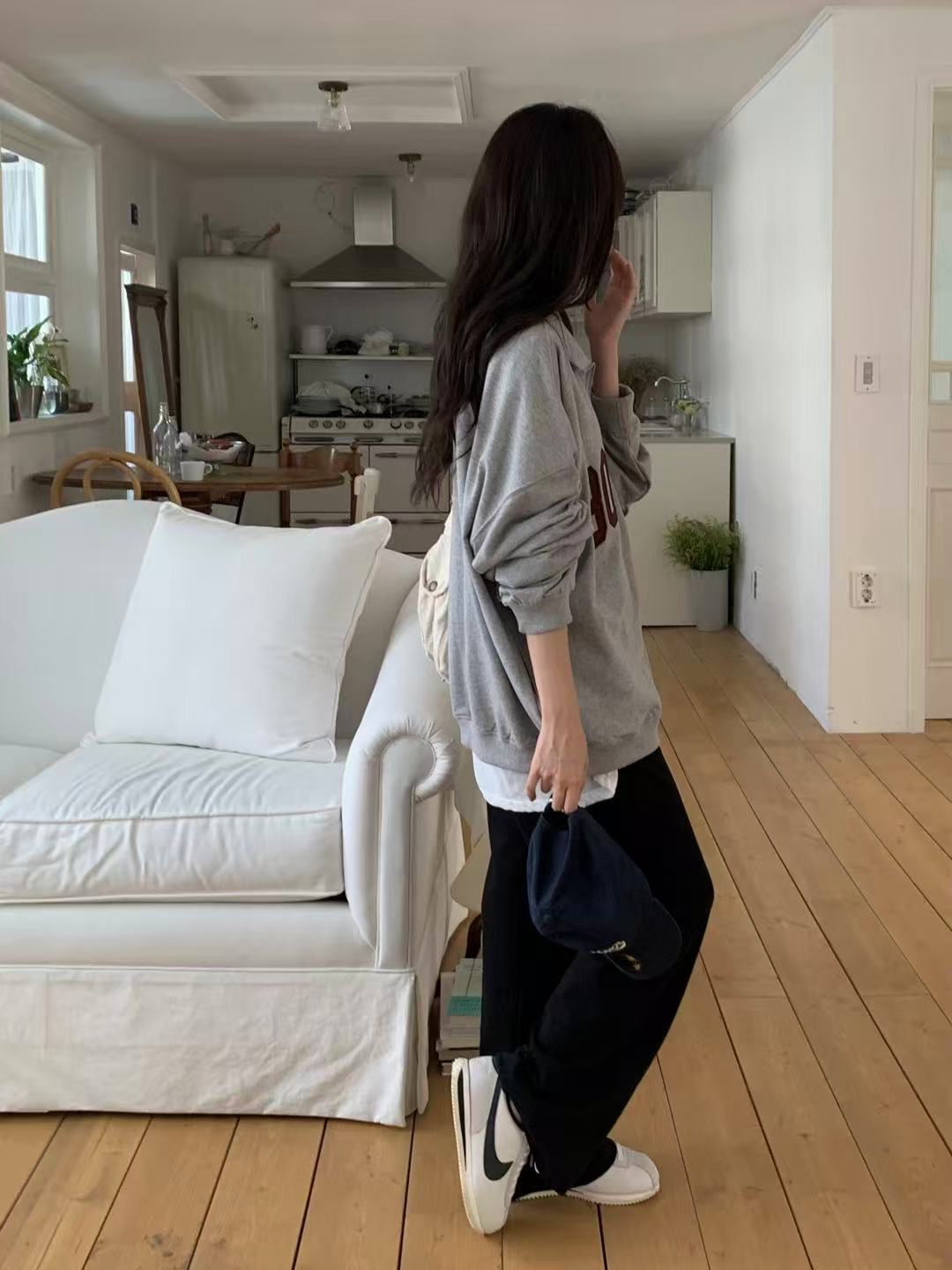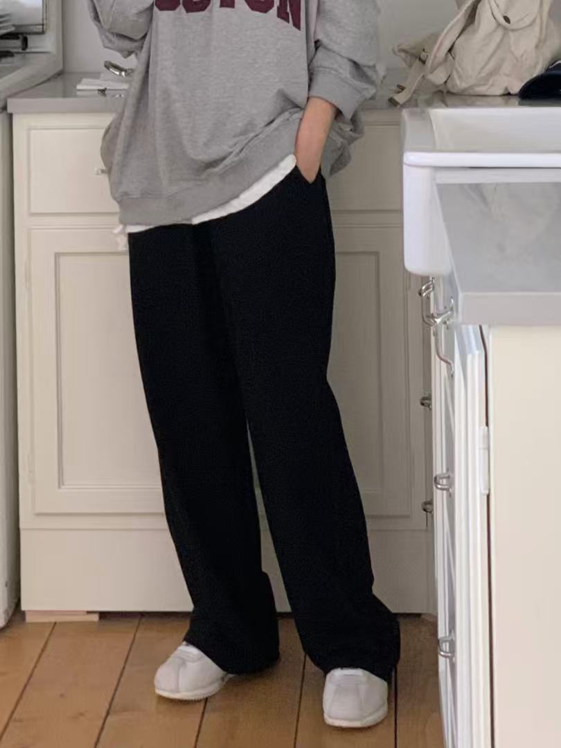 Drawstring elastic waist pants. With a relaxed silhouette, they offer comfort and ease, perfect for everyday casual wear.