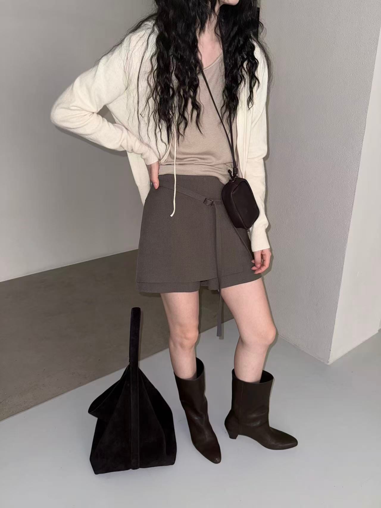 デザイン性のあるシルエットスカートパンツ。