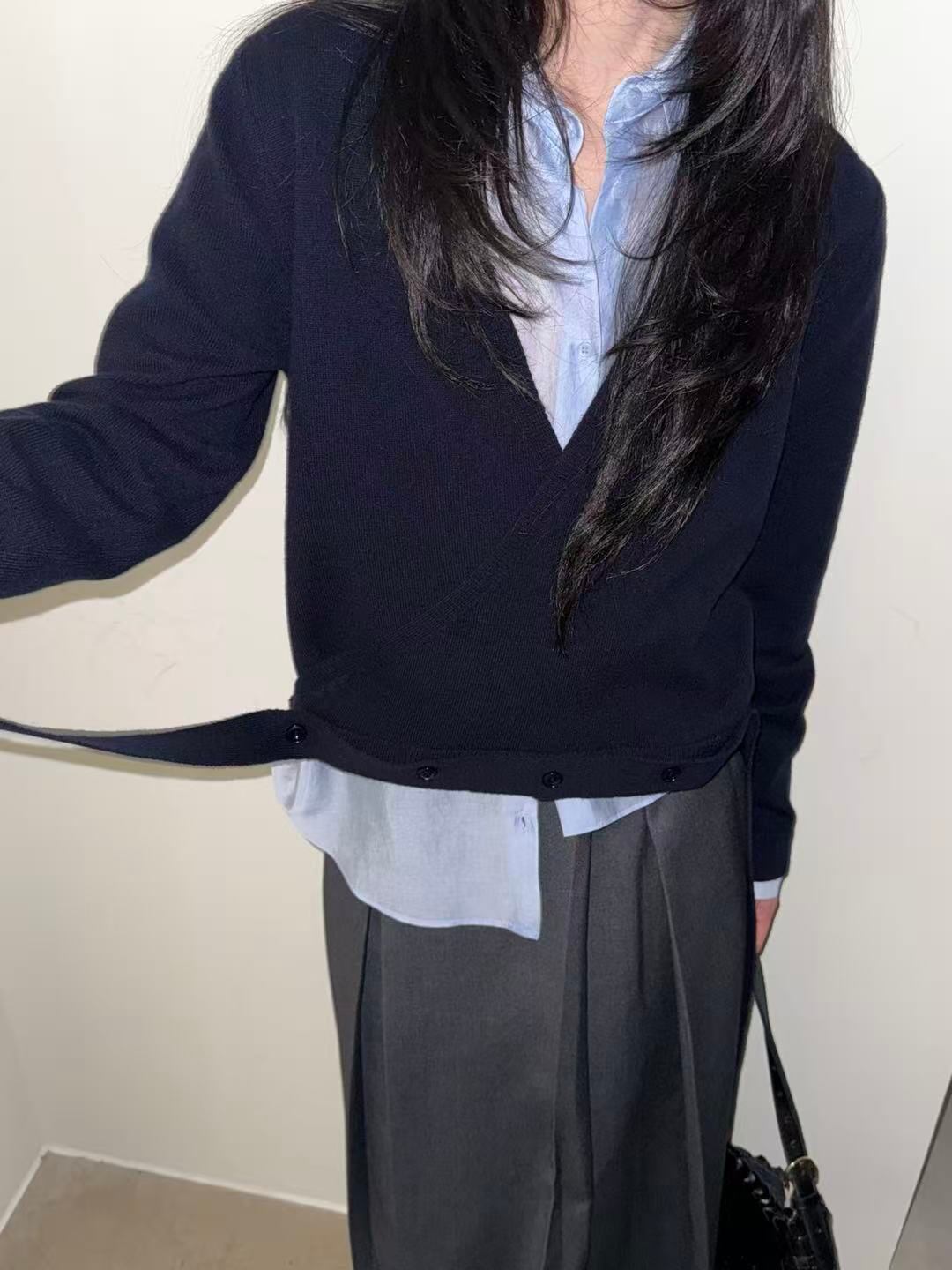 前交差デザインが身体を優しく包み込み、柔らかなラインで日常に詩的な表情を添えます。