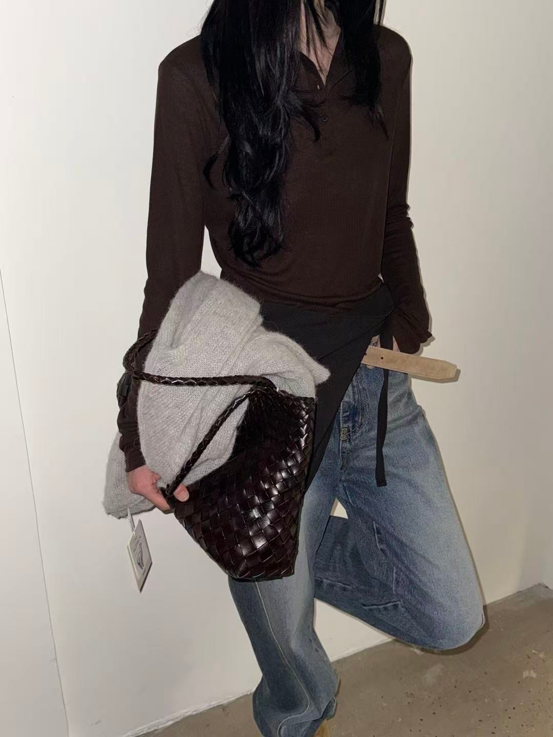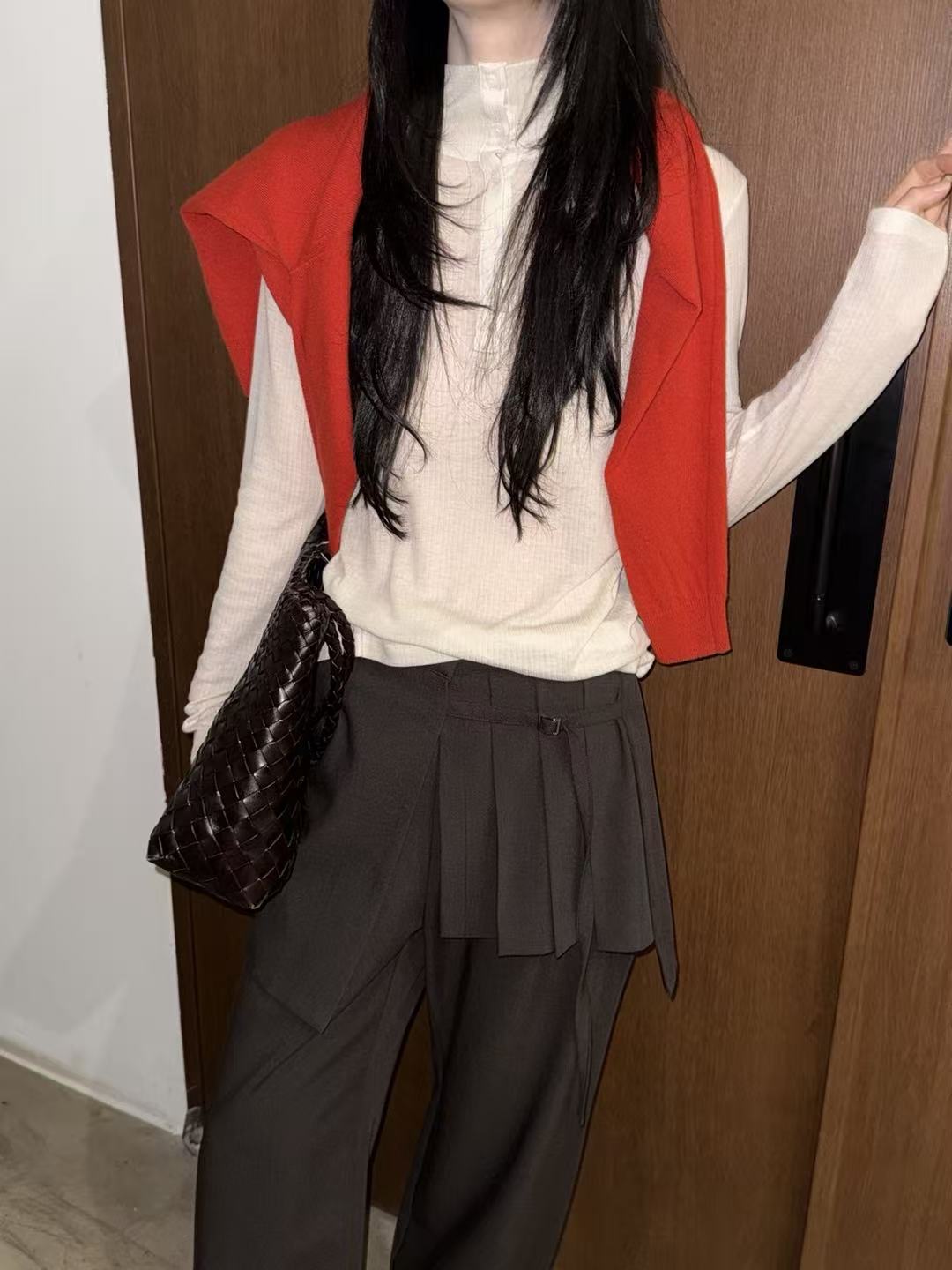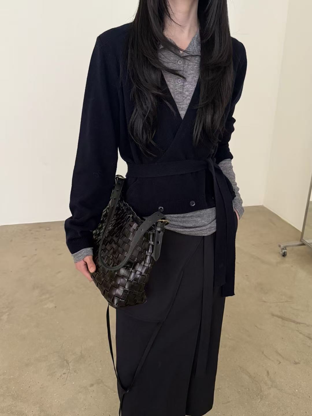 天丝とウールを使用した半ハイネックのボタン付きトップス。柔らかく暖かい素材感で、肌触りも心地よく、上品でシンプルな印象を演出します。