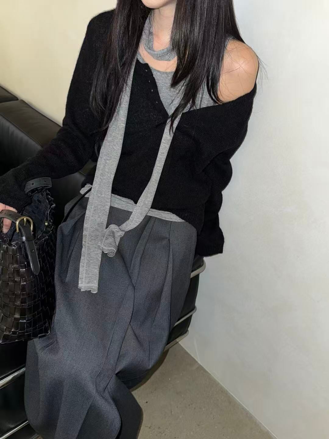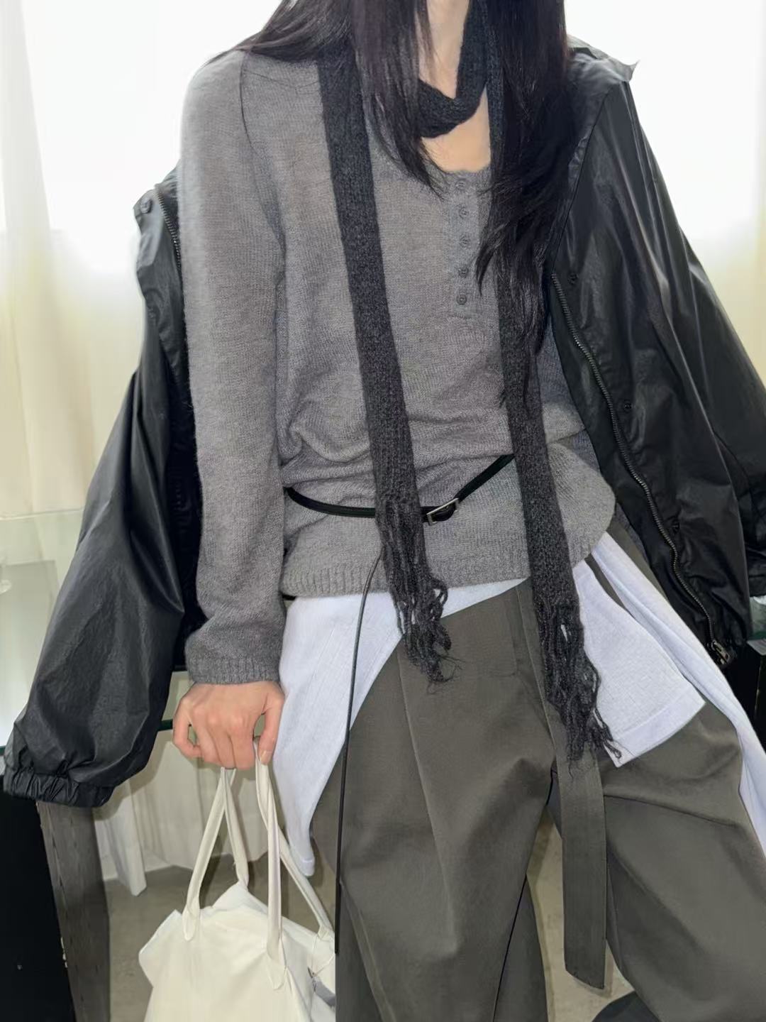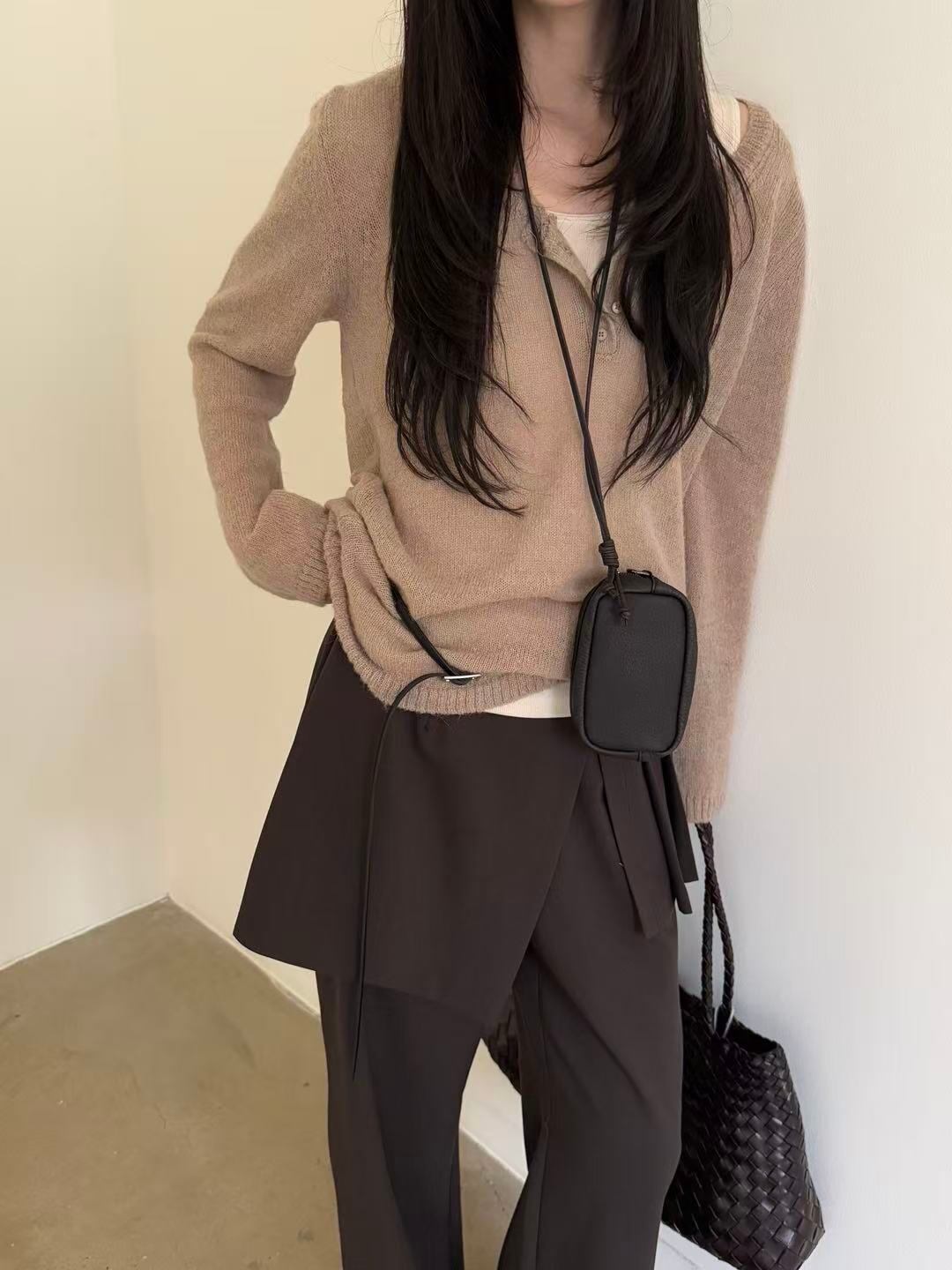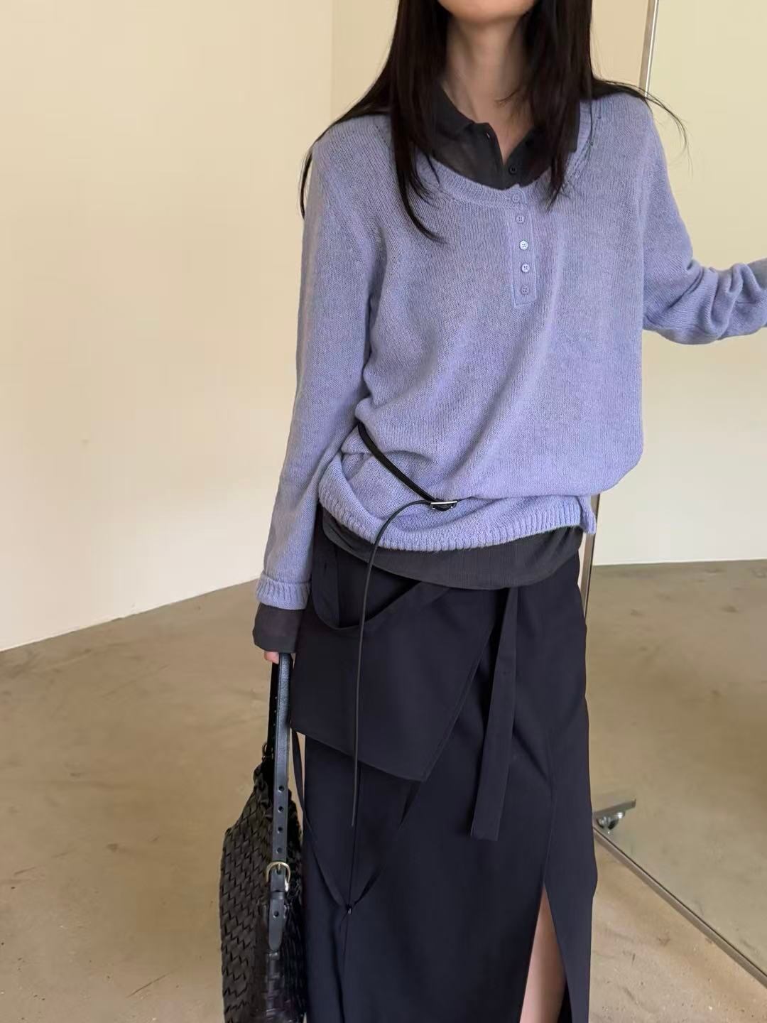 A knit top featuring a wide collar and buttons. Soft and warm, it feels comfortable on the skin while offering an elegant and refined look.