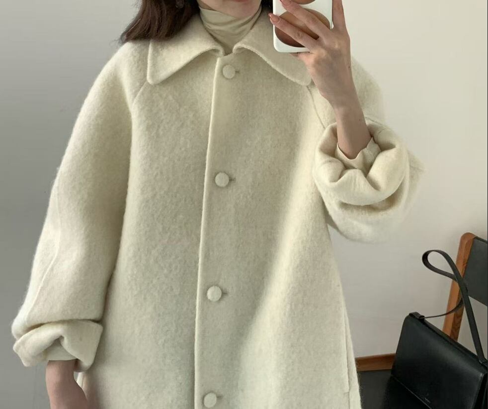 Made from premium wool melton, this coat features a soft, thick texture that gives quiet presence and refined elegance with every wear.