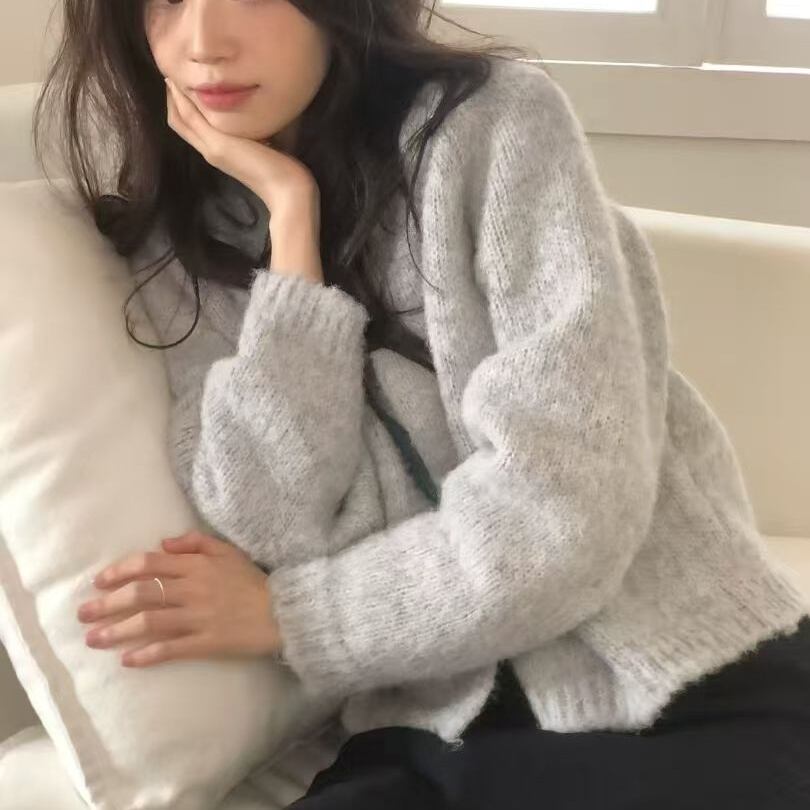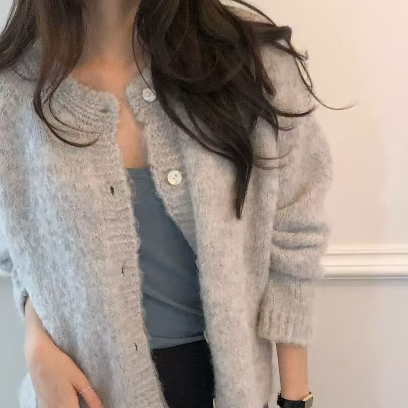 A cardigan knitted from soft, thick material, offering a cozy and enveloping warmth with every wear.