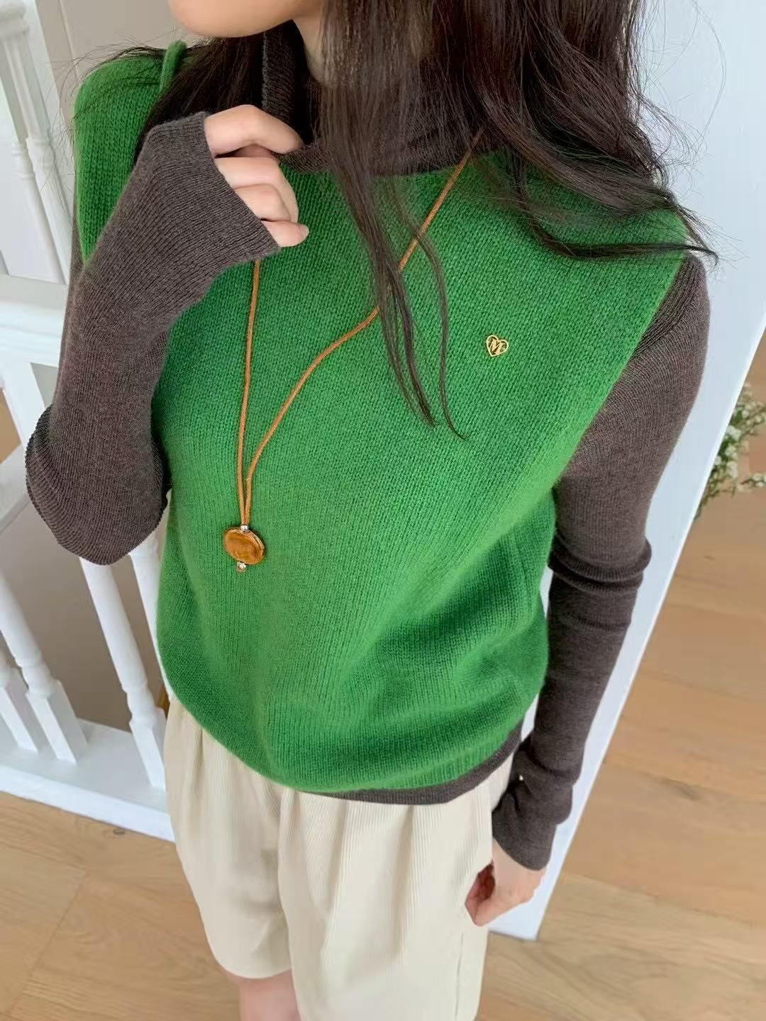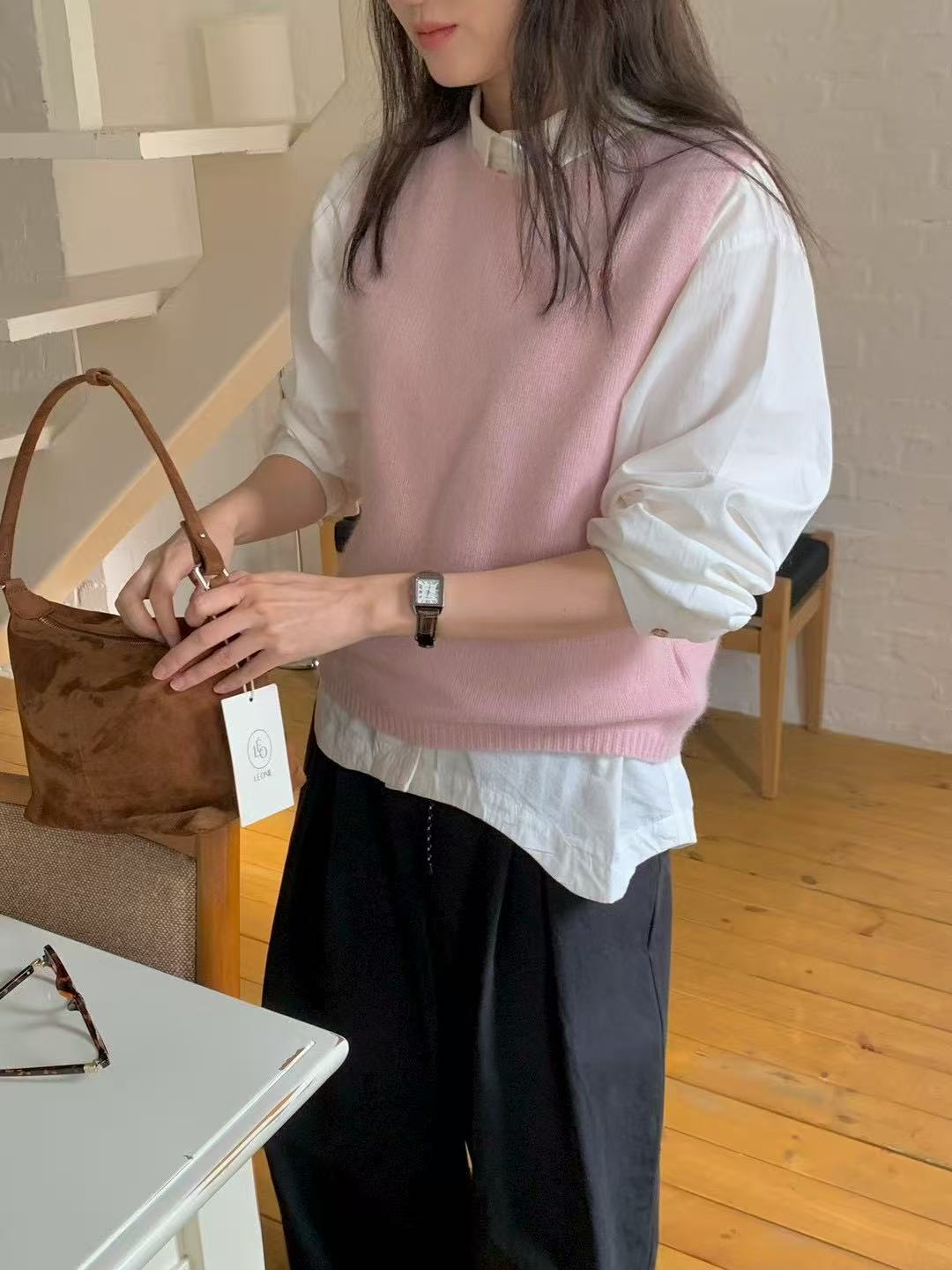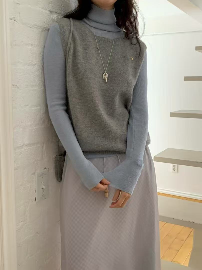 A softly knitted vest that layers with quiet comfort.