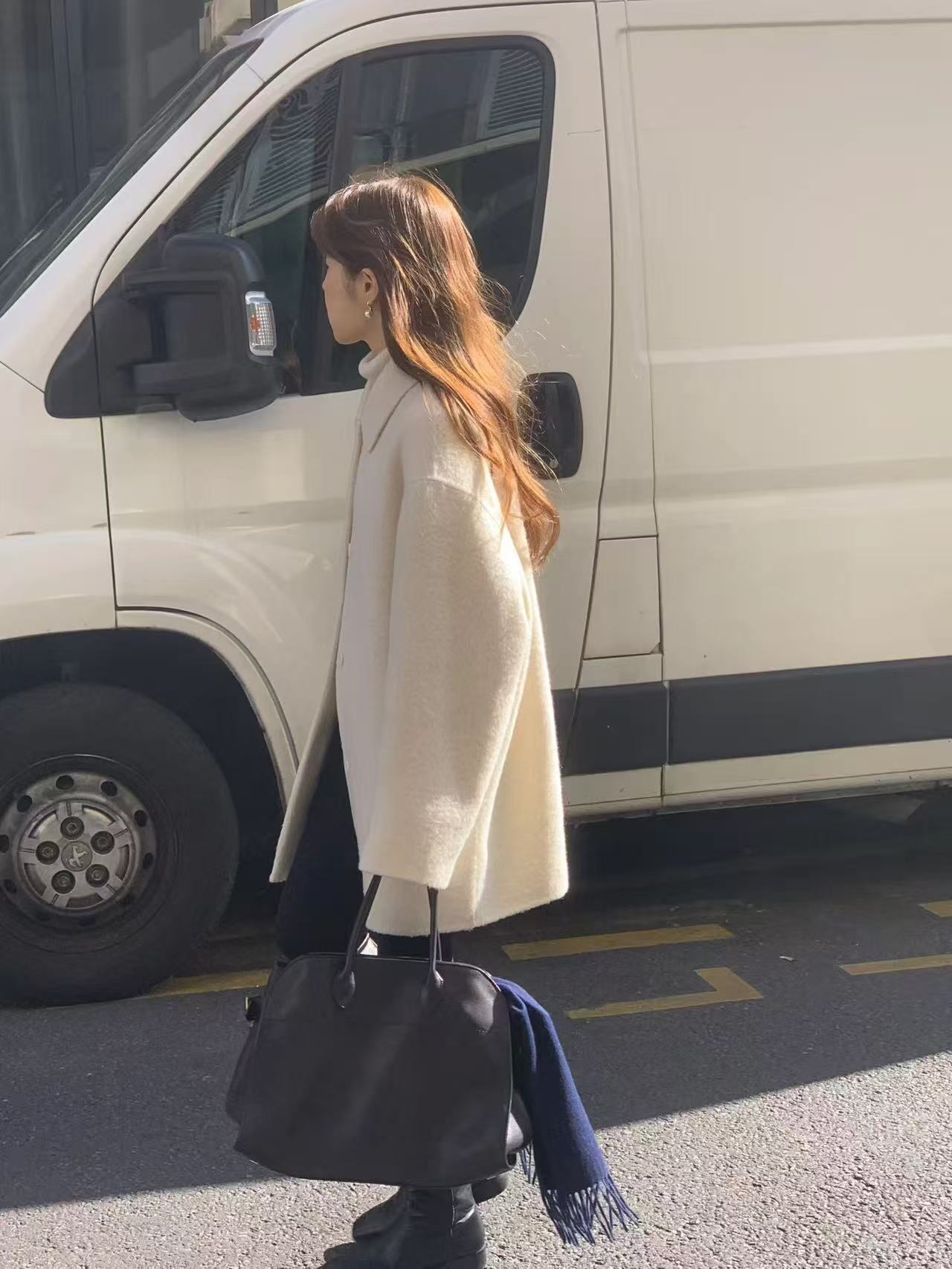 The soft material gently wraps the body, adding a refined and serene touch to autumn and winter outfits.