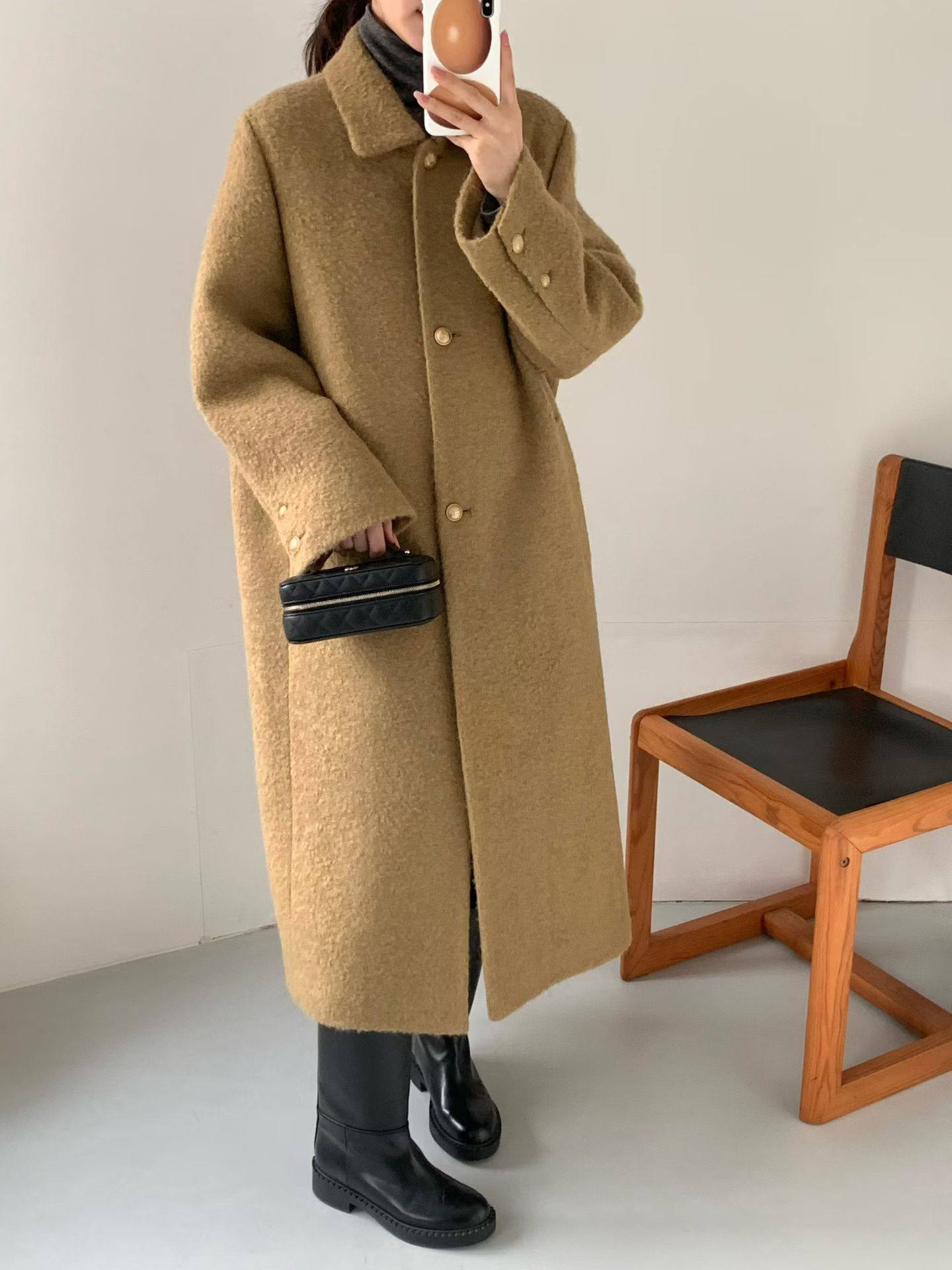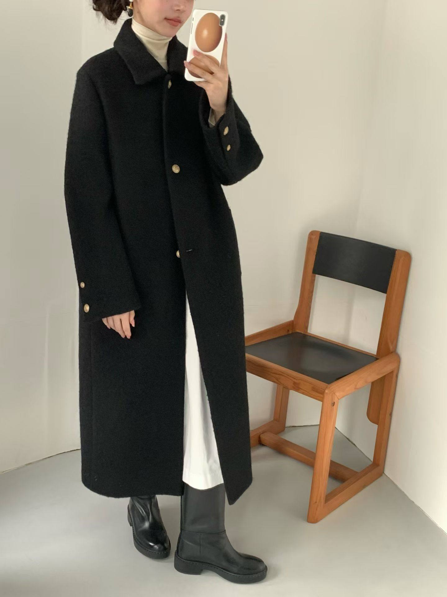 韓国で人気のロングコート。すっきり見えるシルエットで、可愛くてどんなコーデにも合わせやすい一着。
